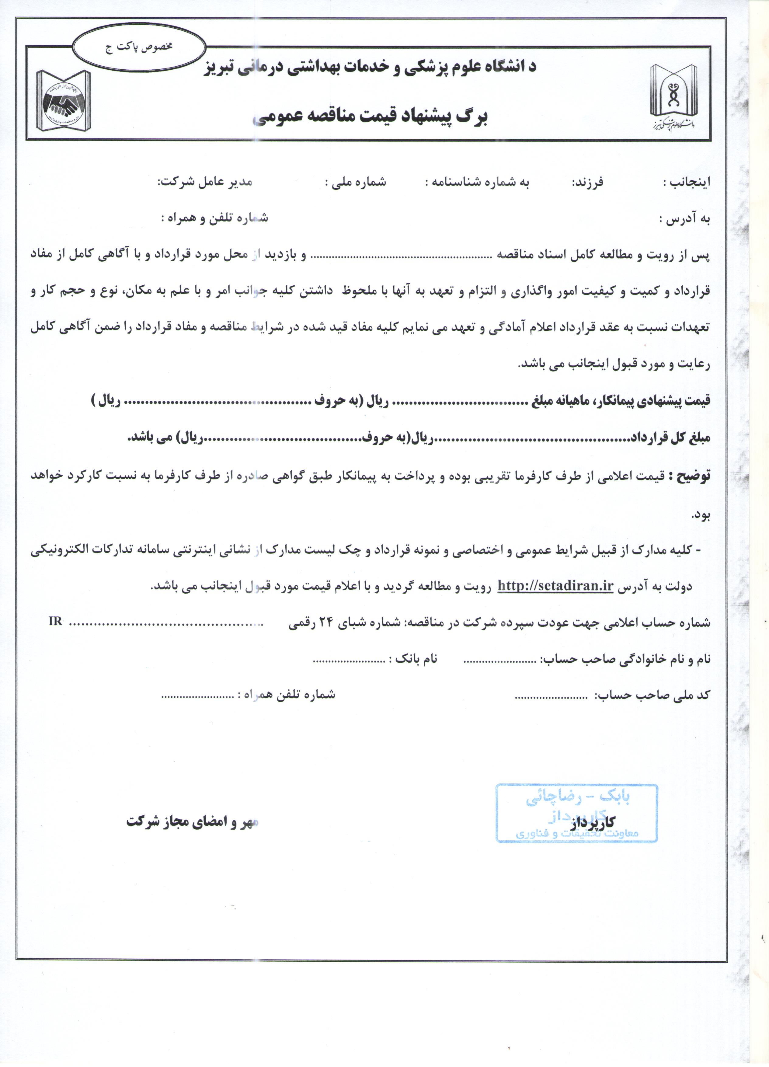 برگه پیشنهاد قیمت