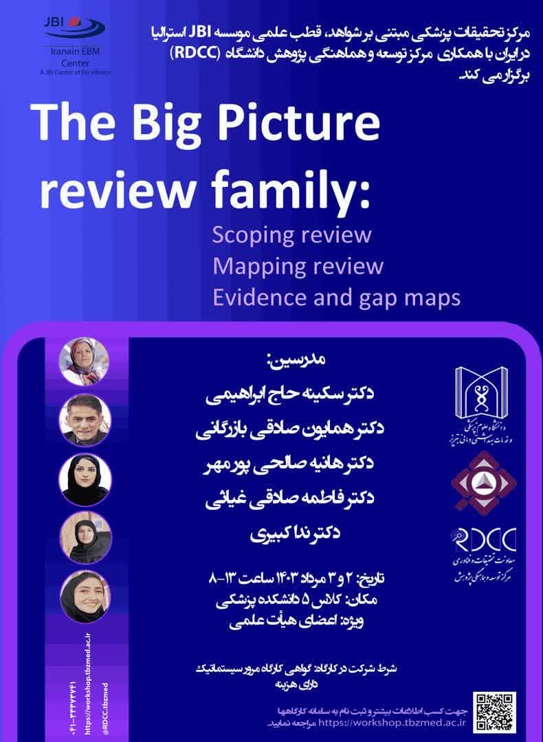 کارگاه The Big Pivture review family: Scoping review - Mapping review - Evidence and gap maps