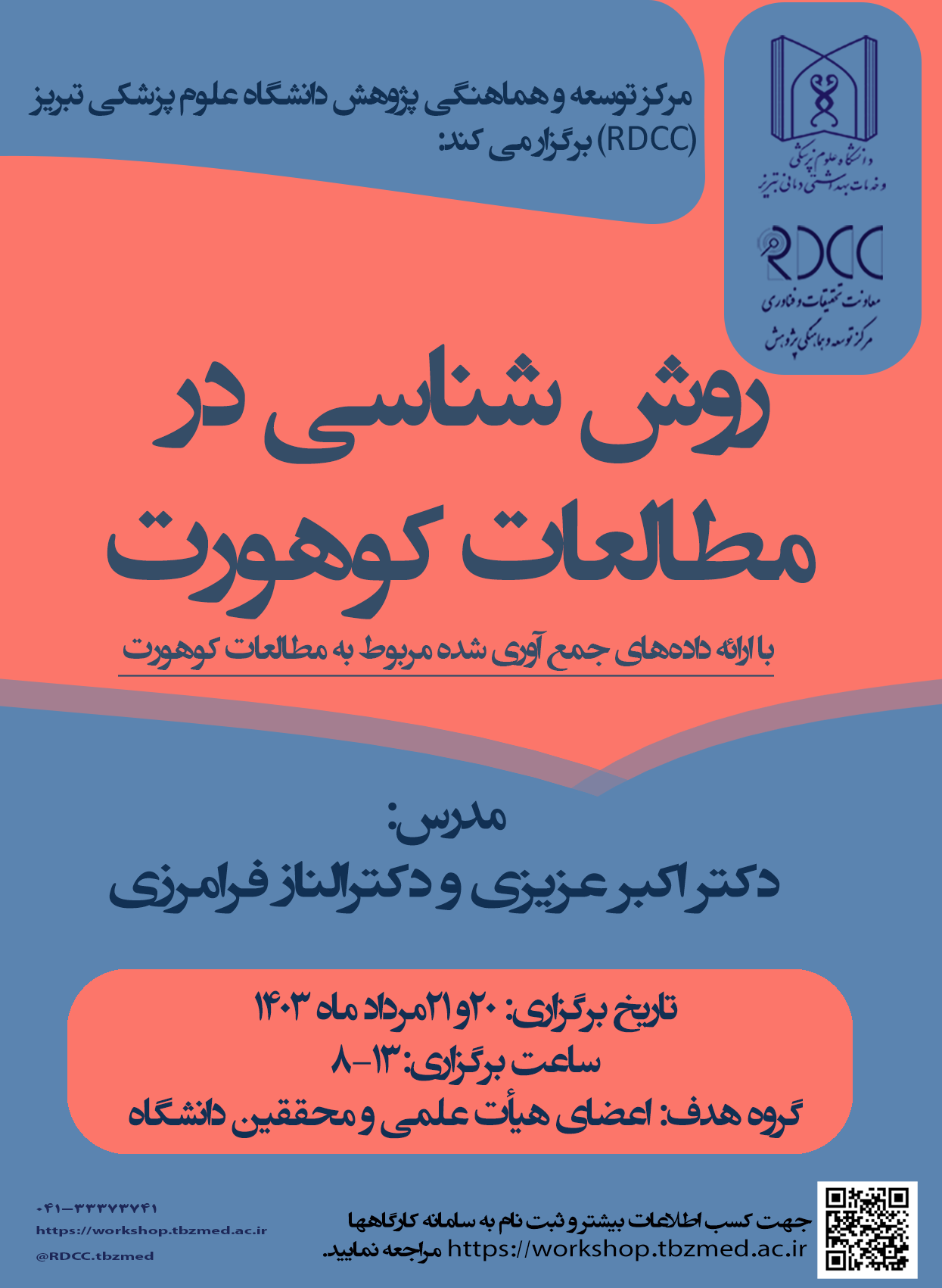 کارگاه " روش شناسی در مطالعات کوهورت " طی روزهای 20 و 21 مردادماه 1403 برگزار می شود