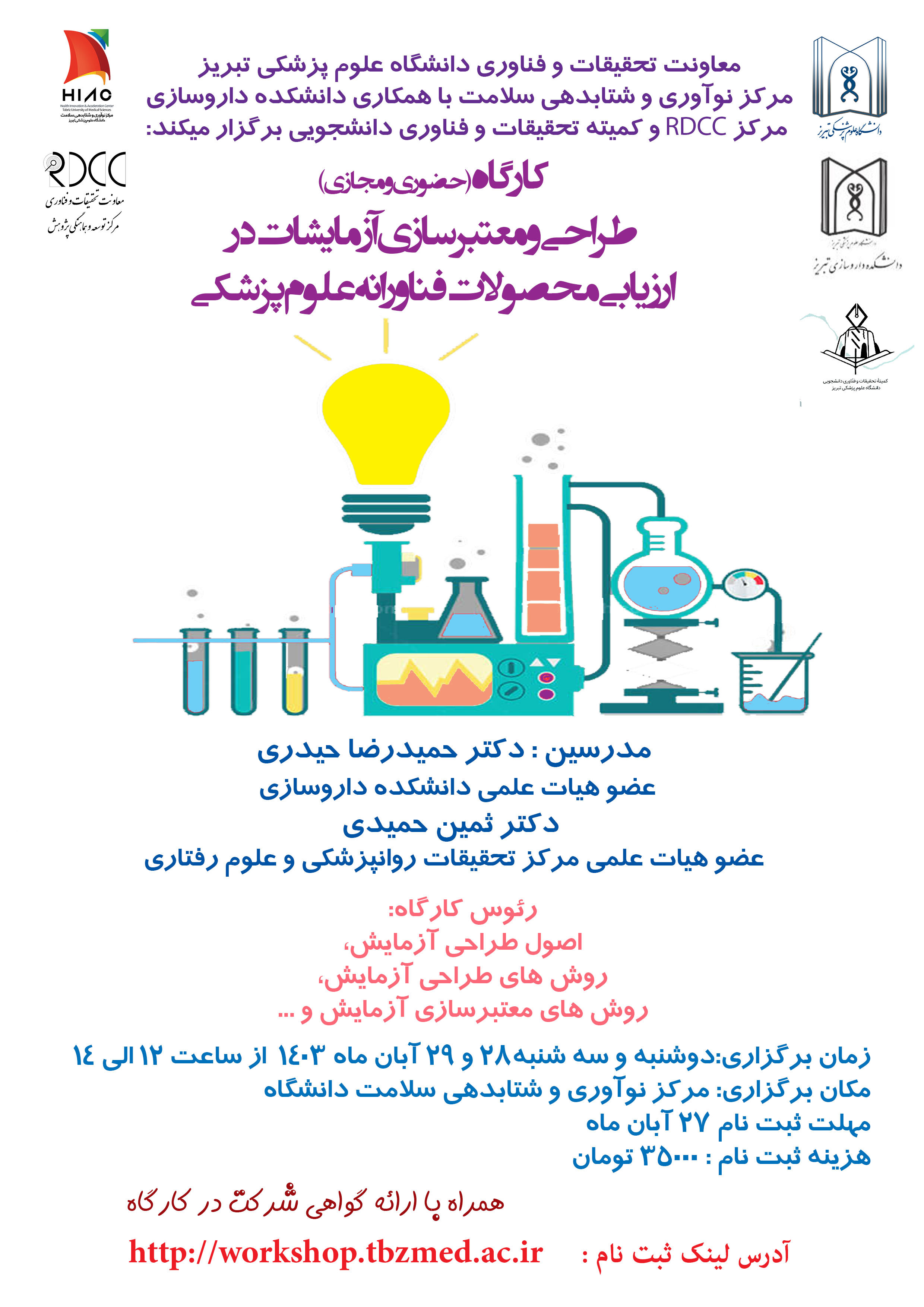 کارگاه حضوری و مجازی "طراحی و معتبرسازی آزمایشات در ارزیابی محصولات فناورانه علوم پزشکی "