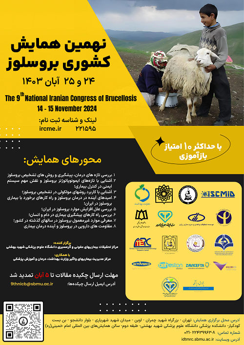 نهمین همایش کشوری بروسلوز توسط مرکز تحقیقات عفونی و گرمسیری دانشگاه علوم پزشکی شهید بهشتی طی روزهای 24 و 25 آبان ماه 1403 با همکاری وزارت بهداشت، درمان و آموزش پزشکی، دانشگاه های علوم پزشکی، نهادها و انجمن های علمی کل کشور با امتیاز بازآموزی برگزار می شود