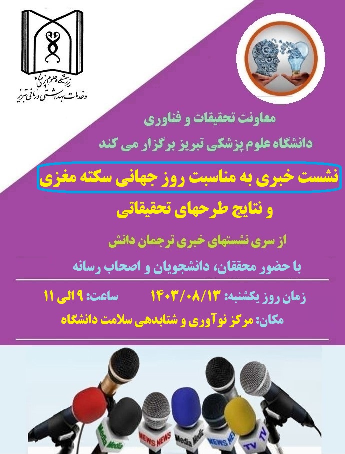 معاونت تحقیقات و فناوری دانشگاه علوم پزشکی تبریز برگزار می کند: