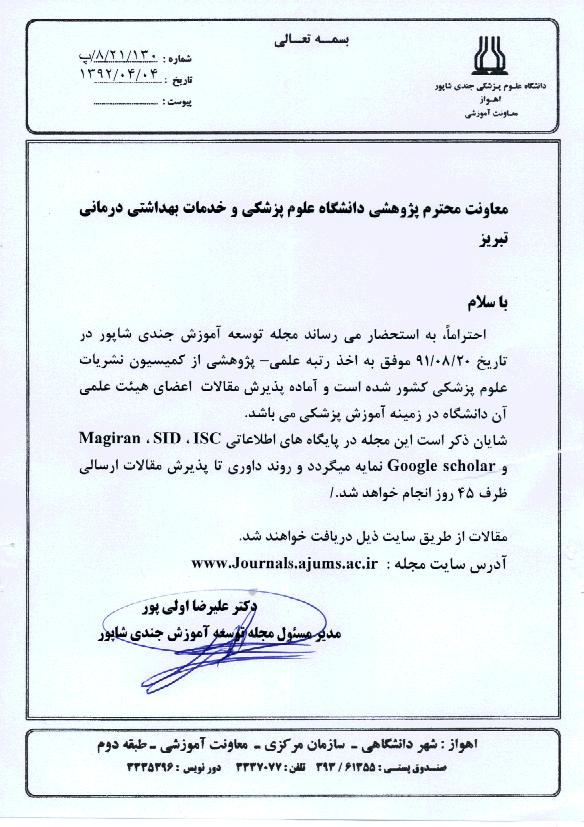 آمادگی پذیرش مقالات اعضای هیئت علمی کد خبر : 34703 کپی کلمات کلیدی : دانشگاه علوم پزشکی تبریز آمادگی پذیرش مقالات اعضای هیئت علمی