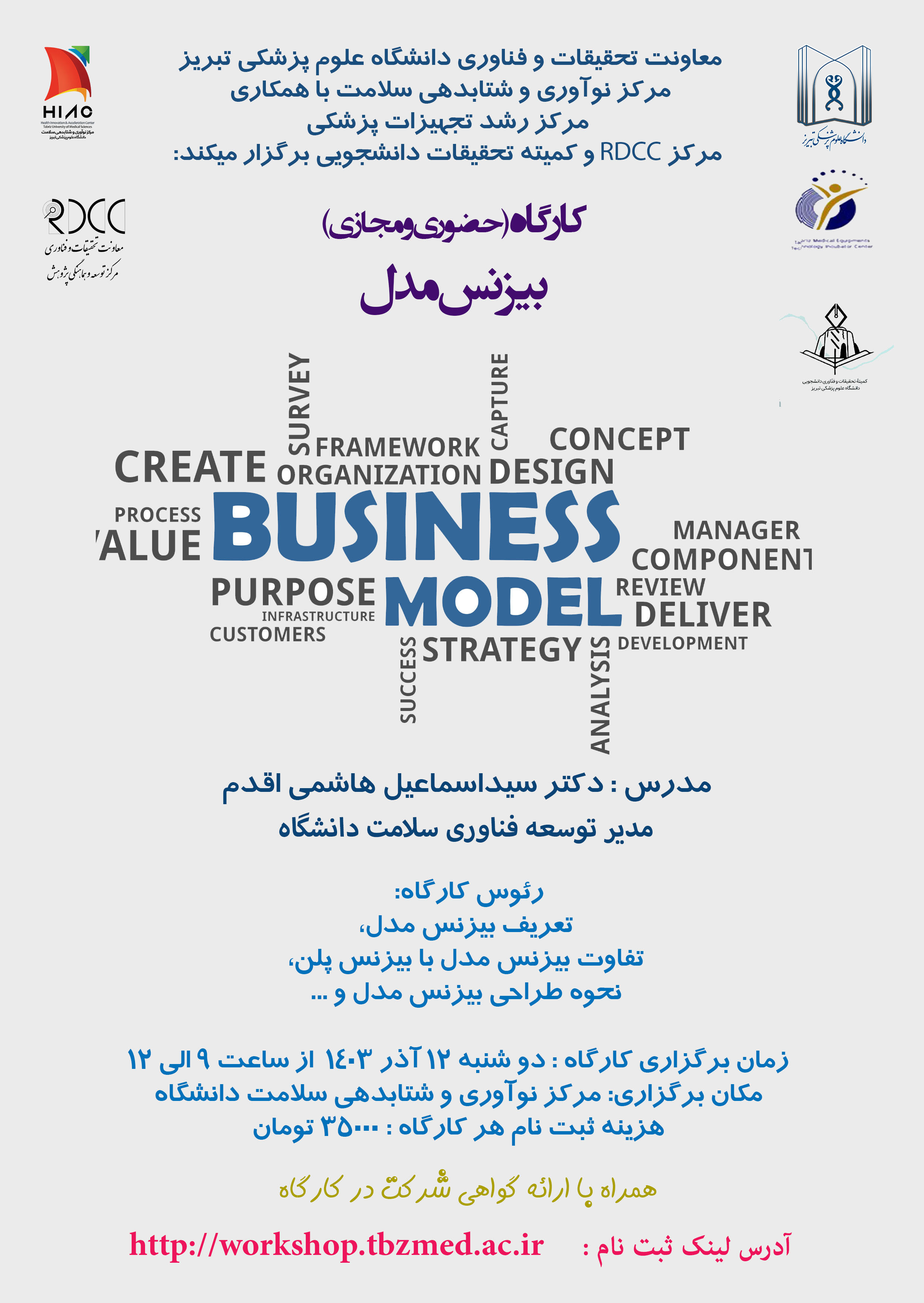 مرکز نوآوری و شتابدهی سلامت دانشگاه کارگاه حضوری و مجازی " بیزنس مدل" را روز دوشنبه 12 آذرماه 1403 برگزار می کند