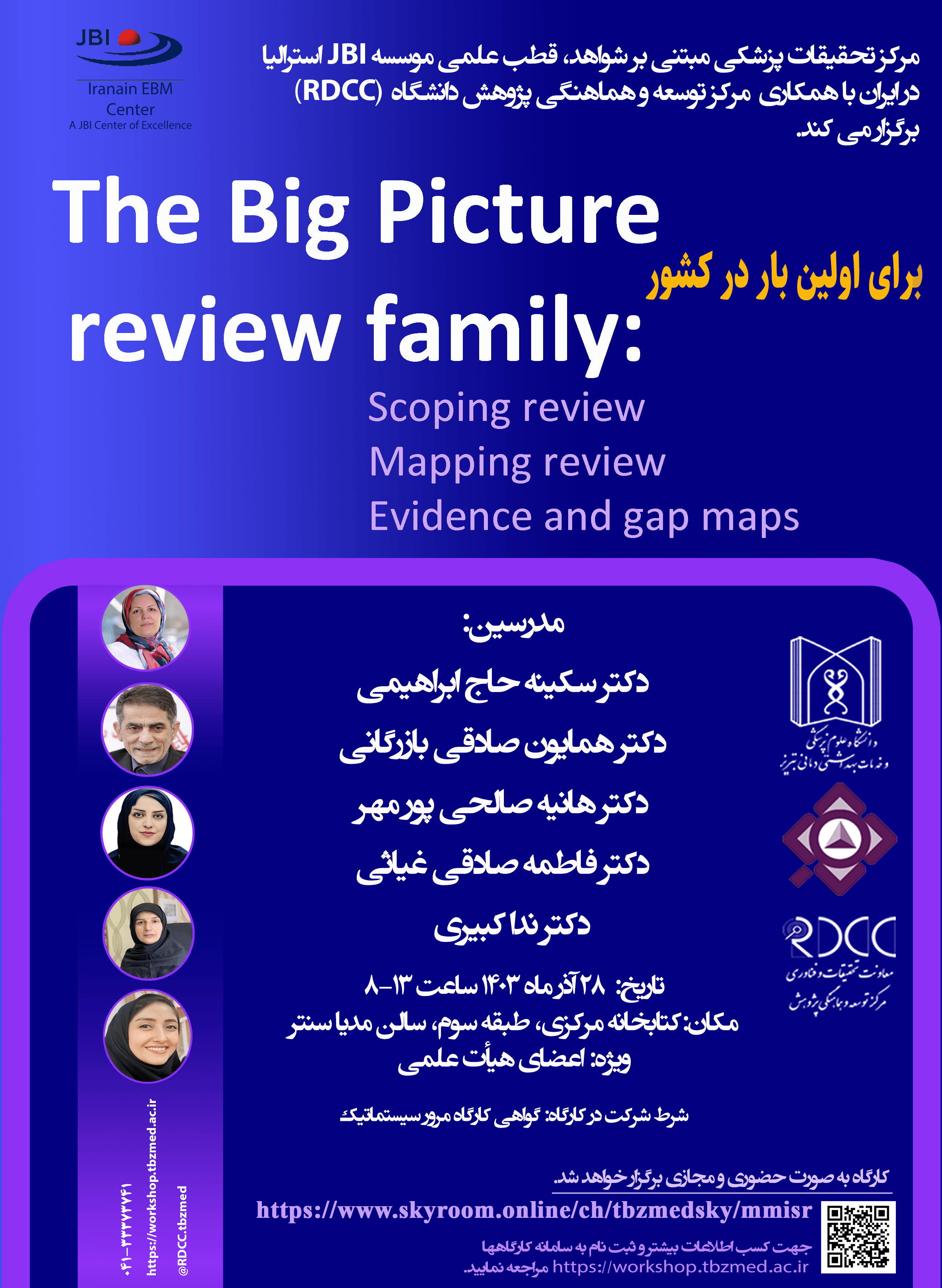 کارگاه The Big Pivture review family: Scoping review - Mapping review - Evidence and gap maps (برای اولین بار در کشور)