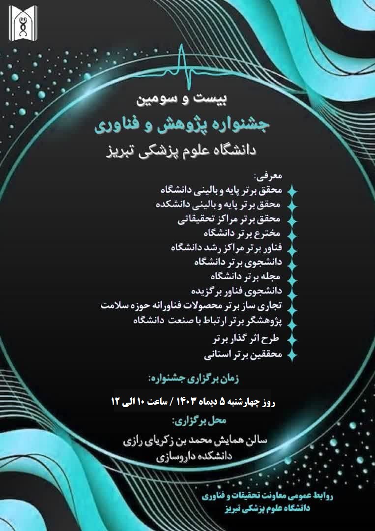 به همت معاونت تحقیقات و فناوری دانشگاه علوم پزشکی تبریز برگزار می شود: