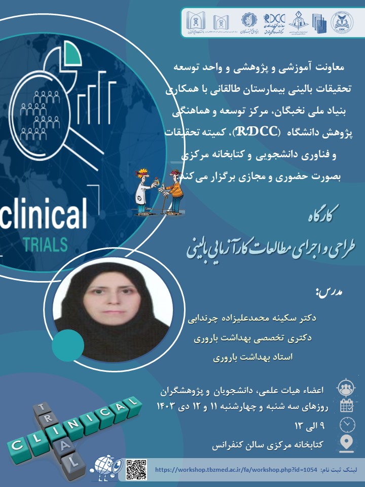 کارگاه پژوهشی تحت عنوان " طراحی و اجرای مطالعات کارآزمایی بالینی"