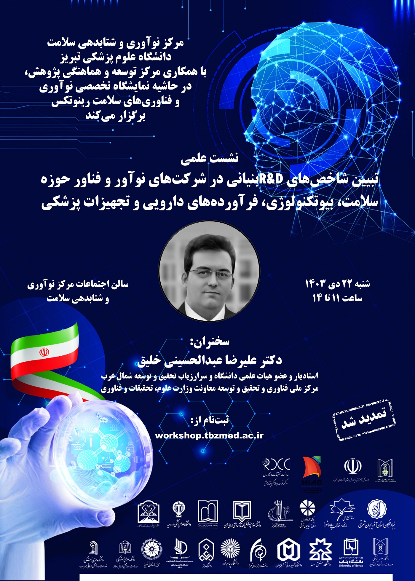 تمدید ثبت نام کارگاه حضوری " تبیین شاخص های R&D بنیانی در شرکت های نوآور و فناور حوزه سلامت، بیوتکنولوژی، فرآورده های دارویی و تجهیزات پزشکی "