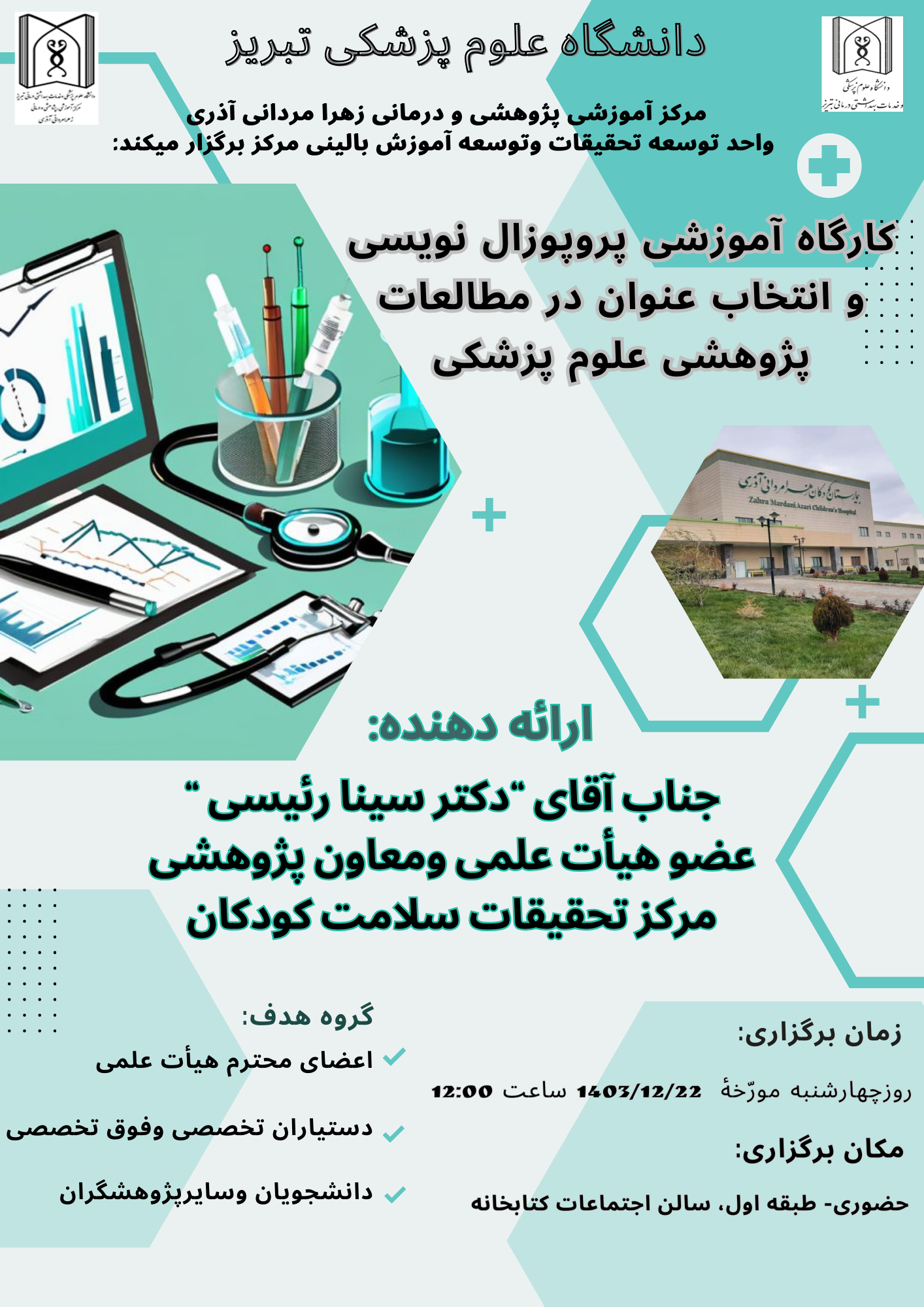 کارگاه آموزشی تحت عنوان: پروپوزال نویسی و انتخاب عنوان در مطالعات پژوهشی علوم پزشکی