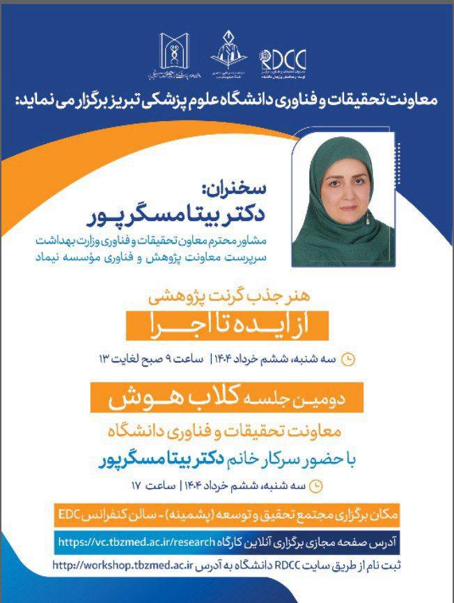 معاونت تحقیقات و فناوری دانشگاه علوم پزشکی تبریز برگزار می کند؛