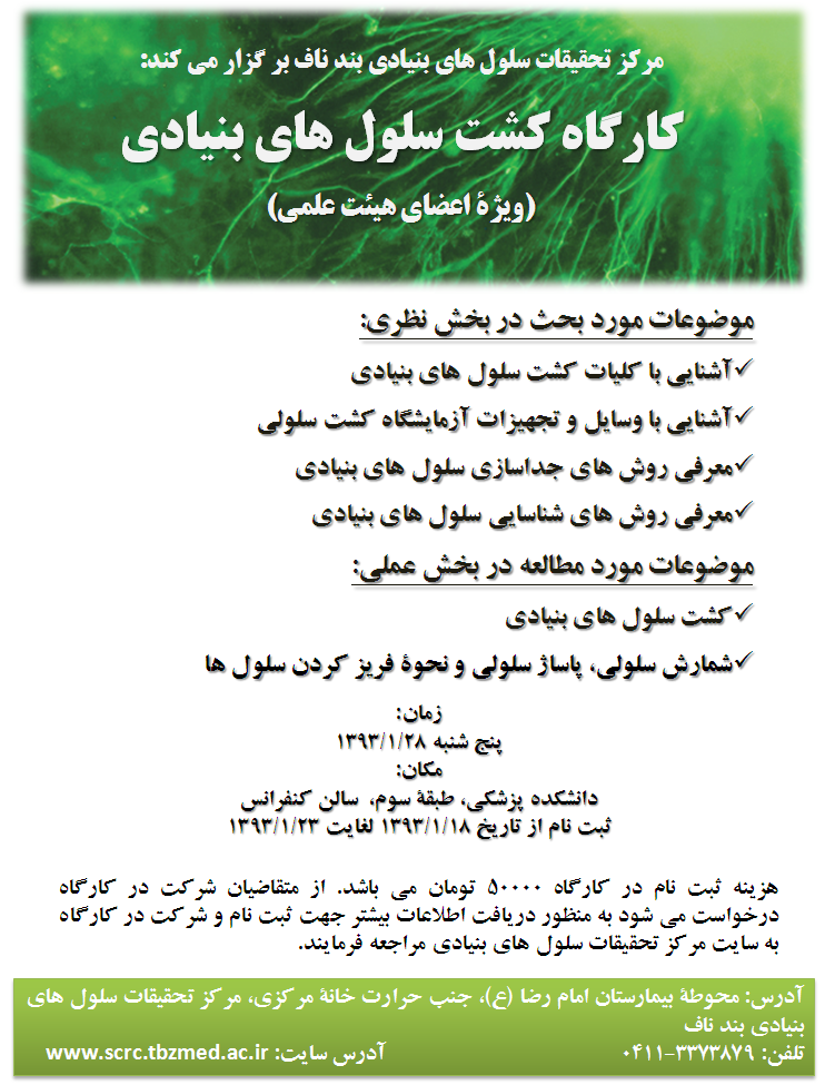 تاریخ انتشار : شنبه ۲۳ فروردین ۱۳۹۳ تعداد بازدید کنندگان خبر : 439 زمان مطالعه : 0 دقیقه کارگاه کشت سلولهای بنیادی کد خبر : 34738 کپی ارسال نظر ثبت