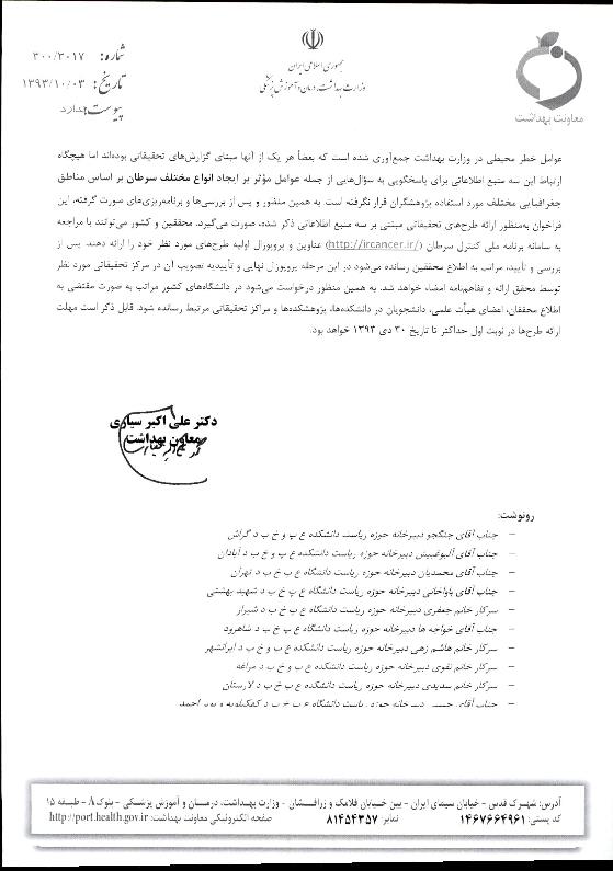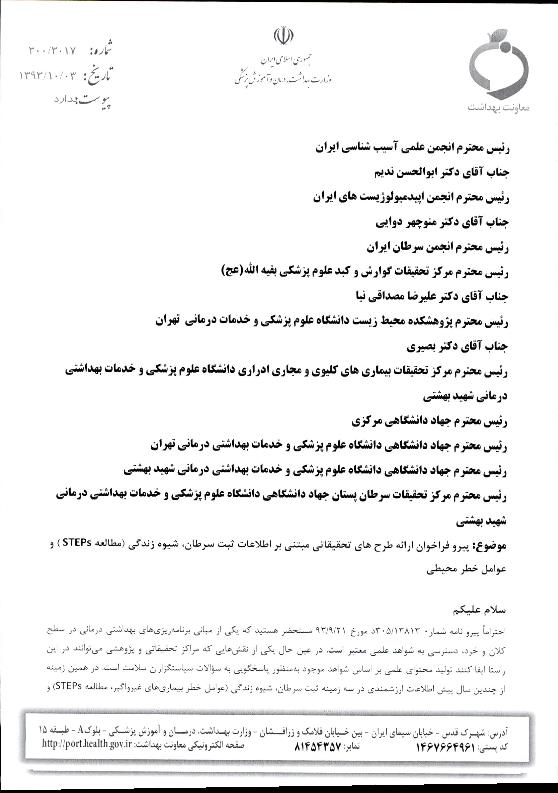 فراخوان ارائه طرح هاي تحقيقاتي مبتني بر اطلاعات ثبت سرطان، شيوه زندگي (مطالعه STEPs ) و عوامل خطر مح