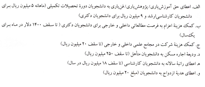 به اطلاع میرساند بنیاد ملی نخبگان با هدف پشتیبانی از فعالیت های نخبگان و توانمند کردن آنان آيين نامه "اعطاي جايزه هاي تحصيلي به دانشجويان صاحب استعدادبرتر" را تصویب کرده و از ابتدای سال تحصیلی جاری مورد اجرا قرار داده است.طبق آیین نامه بنیاد با اعطای چهار جایزه "آموزش" "پژوهش" "فناوری "و "فرهنگ "تسهیلات وسیعی به دانشجویان مشمول ارائه می کند که اهم آن به شرح زیر است: