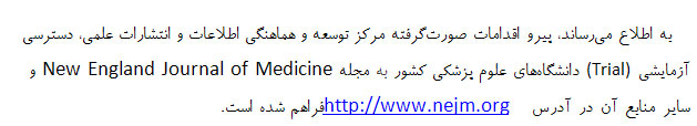اعلام برقراري دسترسي آزمايشي (Trial) دانشگاههاي علوم پزشكي كشور به مجله New England Journal of Medicine