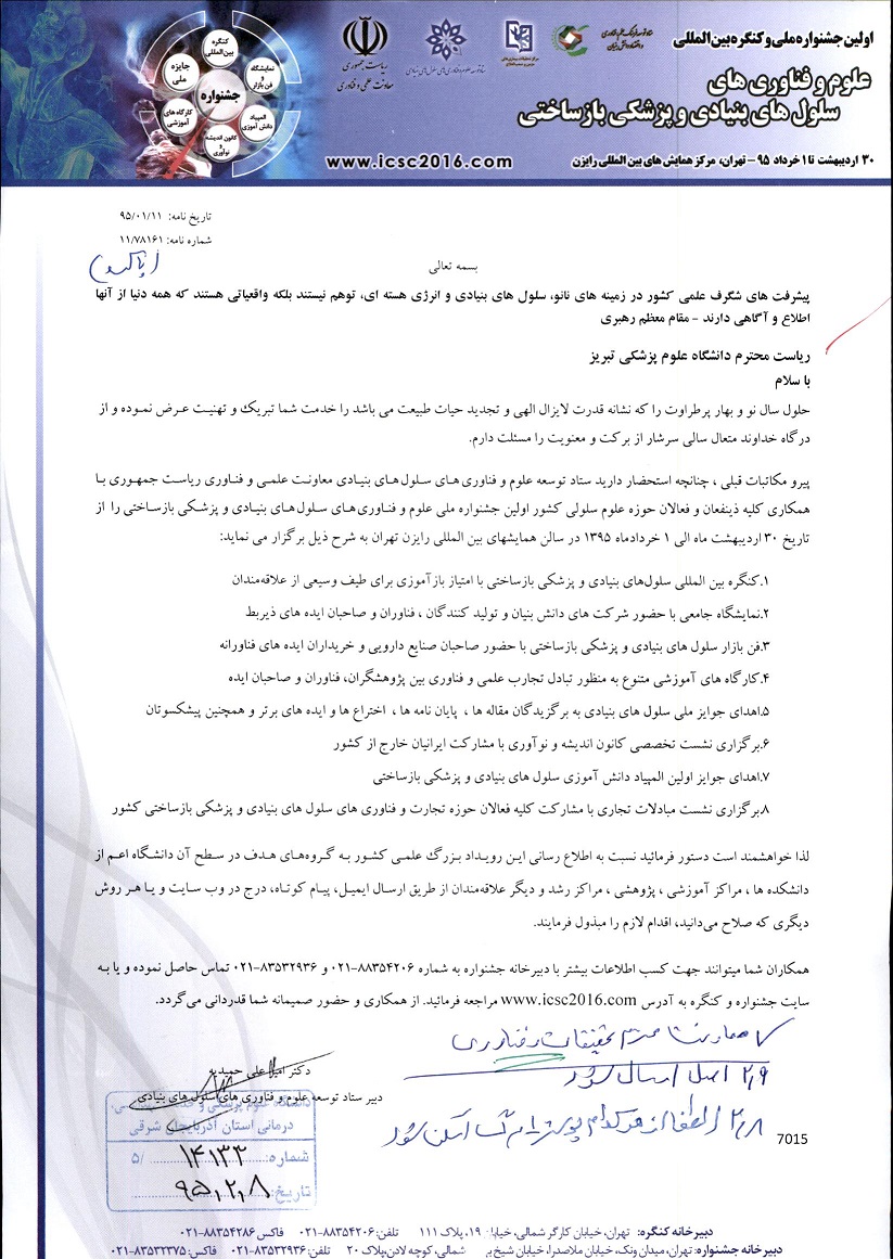 اولین جشنواره ملي و كنگره بين المللي علوم و فناوري هاي سلول هاي بنيادي و پزشكي بازساختي