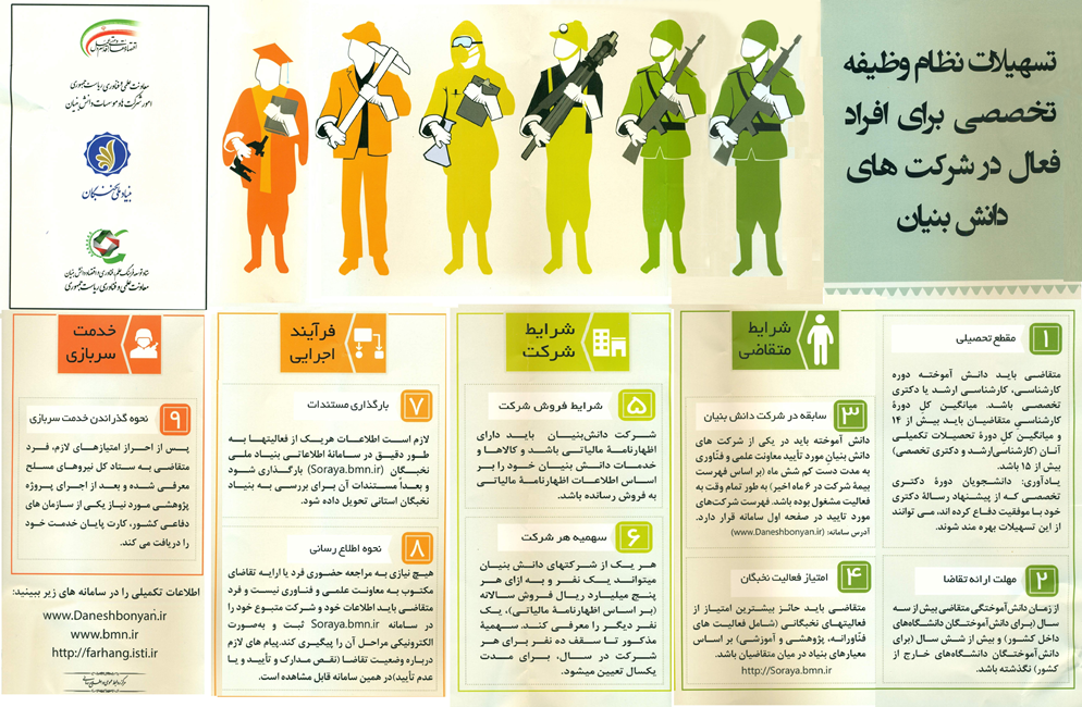 تسهیلات نظام وظیفه تخصصي براي افراد فعال در شرکتهاي دانش بنيان