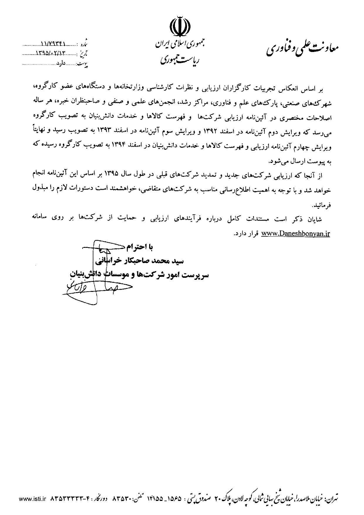 اطلاع رسانی آیین نامه جدید ارزیابی کالا و خدمات دانش بنیان-معاونت علمی و فناوری ریاست جمهوری - آیین نامه جدید ارزیابی کالا و خدمات دانش بنیان-معاونت علمی و فناوری ریاست جمهوری کد خبر : 35061 کپی کلمات کلیدی : ریاست جمهوری اطلاع رسانی معاونت علمی فناوری خدمات دانش بنیان ارزیابی کالا آیین نامه جدید