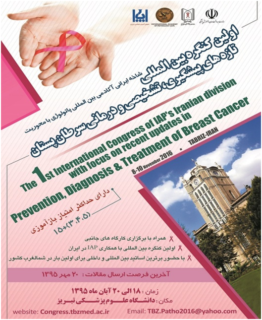 این کنگره برای اولین بار با همکاری آکادمی بین المللی پاتولوژی (IAP ) و با حضور برجسته ترین اساتید پاتولوژي بین المللی از از أمريكا و كانادا و دانشگاههاي كشور در حوزه سرطان پستان در دانشگاه علوم پزشکی تبریز برگزار می گردد.