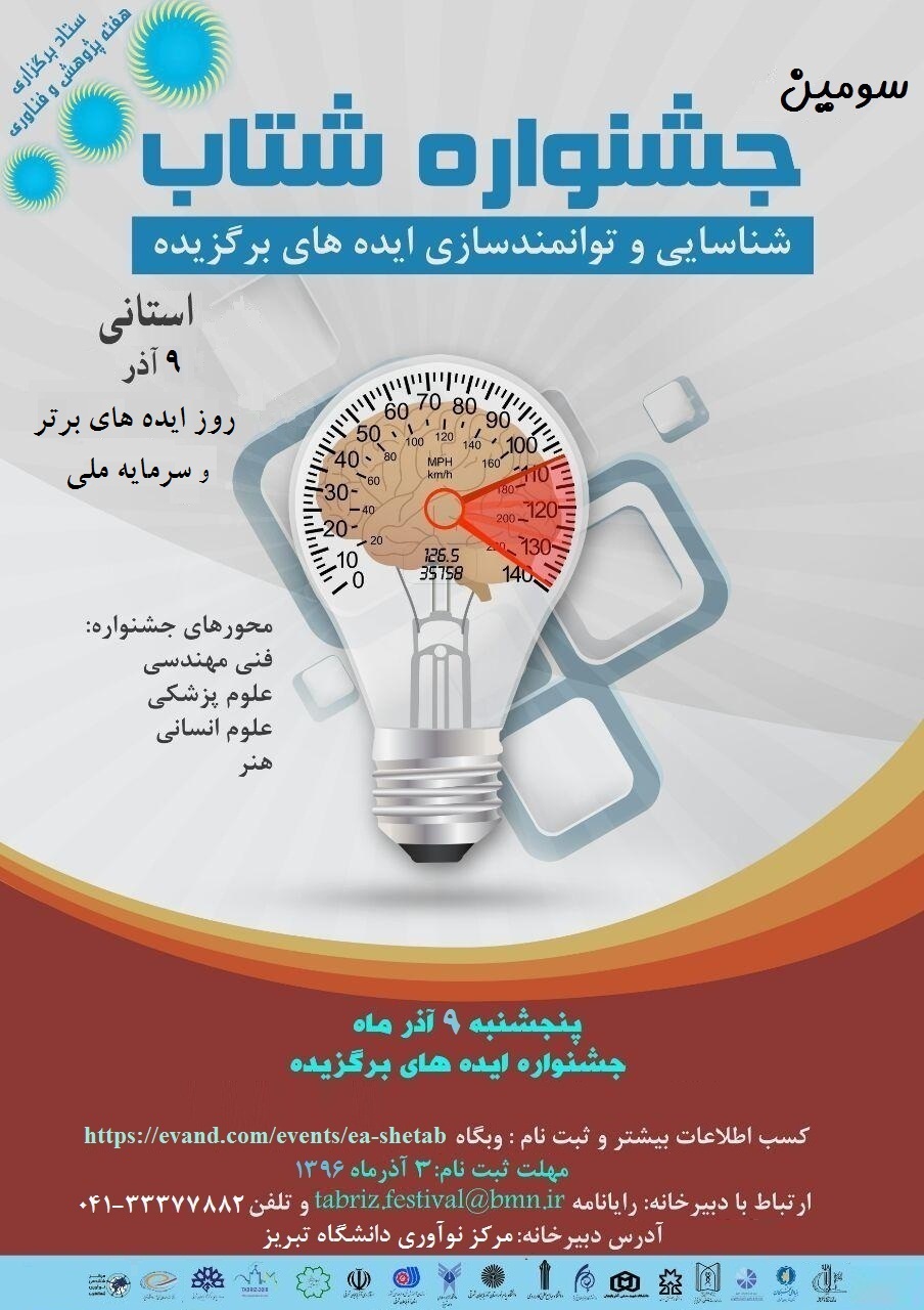 جشنواره شناسایی و توانمندسازی ایده های برگزیده(شتاب) یک رویداد غیرانتفاعی است که با هدف ایجاد کسب و کار نو از ایده های نو، ایجاد فضایی برای رقابت سالم و سازنده بین افراد خلاق و ایده پرداز و مهمتر از همه فرهنگسازی و ترویج خلاقیت، نوآوری و ایدهپردازی در میان مخاطبان پرشمار برگزار میگردد. این رویداد 9 آذرماه در محل مرکز نوآوری دانشگاه تبریز و در دو بخش برگزار میگردد.